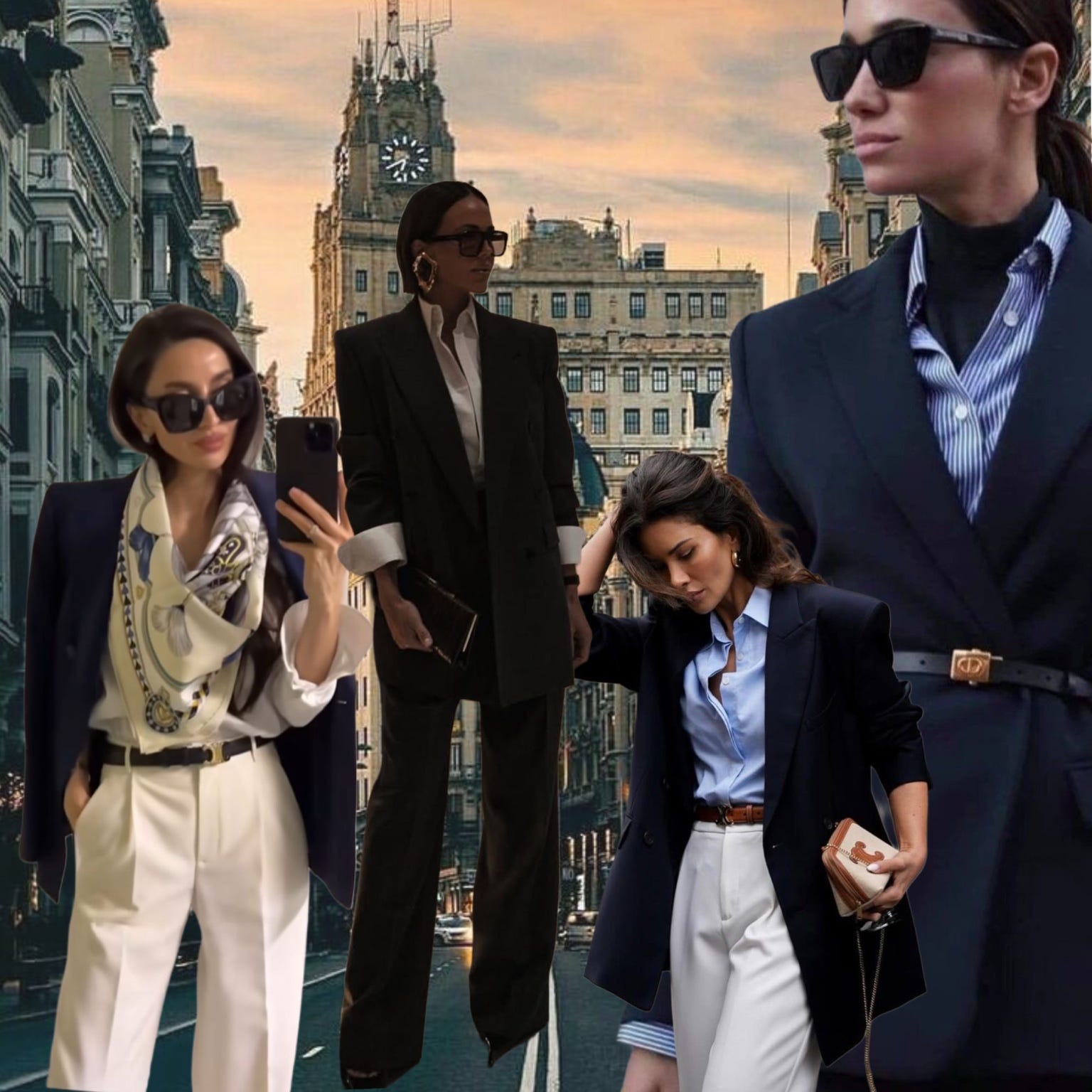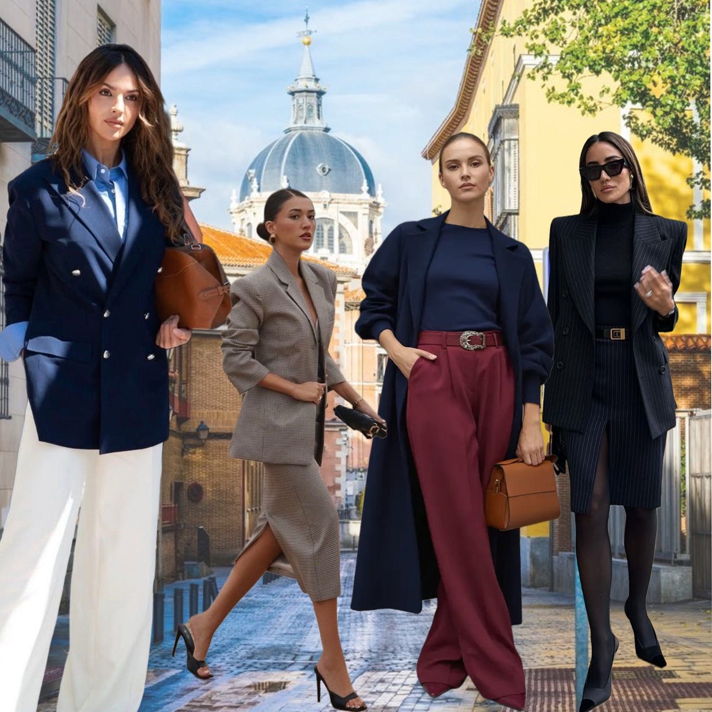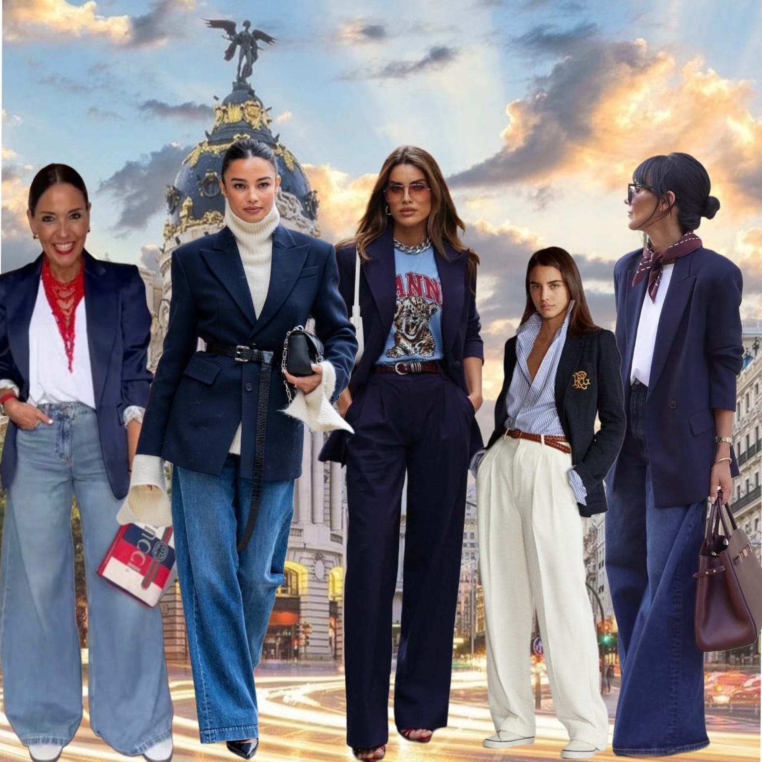 (Madrid style is built on quiet repetition; notice how every outfit comes from the same navy foundation, reimagined, not repeated. Blue is deliberate - the universal language of trust and command.)