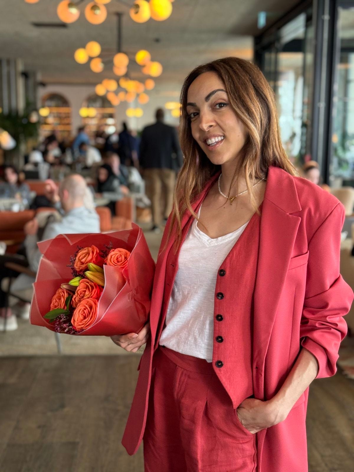 The red suit is another anchor. It’s from Zara, so it’s not some big investment piece, but it has carried me through so many moments when I needed energy. When I wanted to feel strong, visible, awake. It does its job. And the fact that I’ve been able to mix it with a jacket in a different texture, same colour, only makes it more versatile.