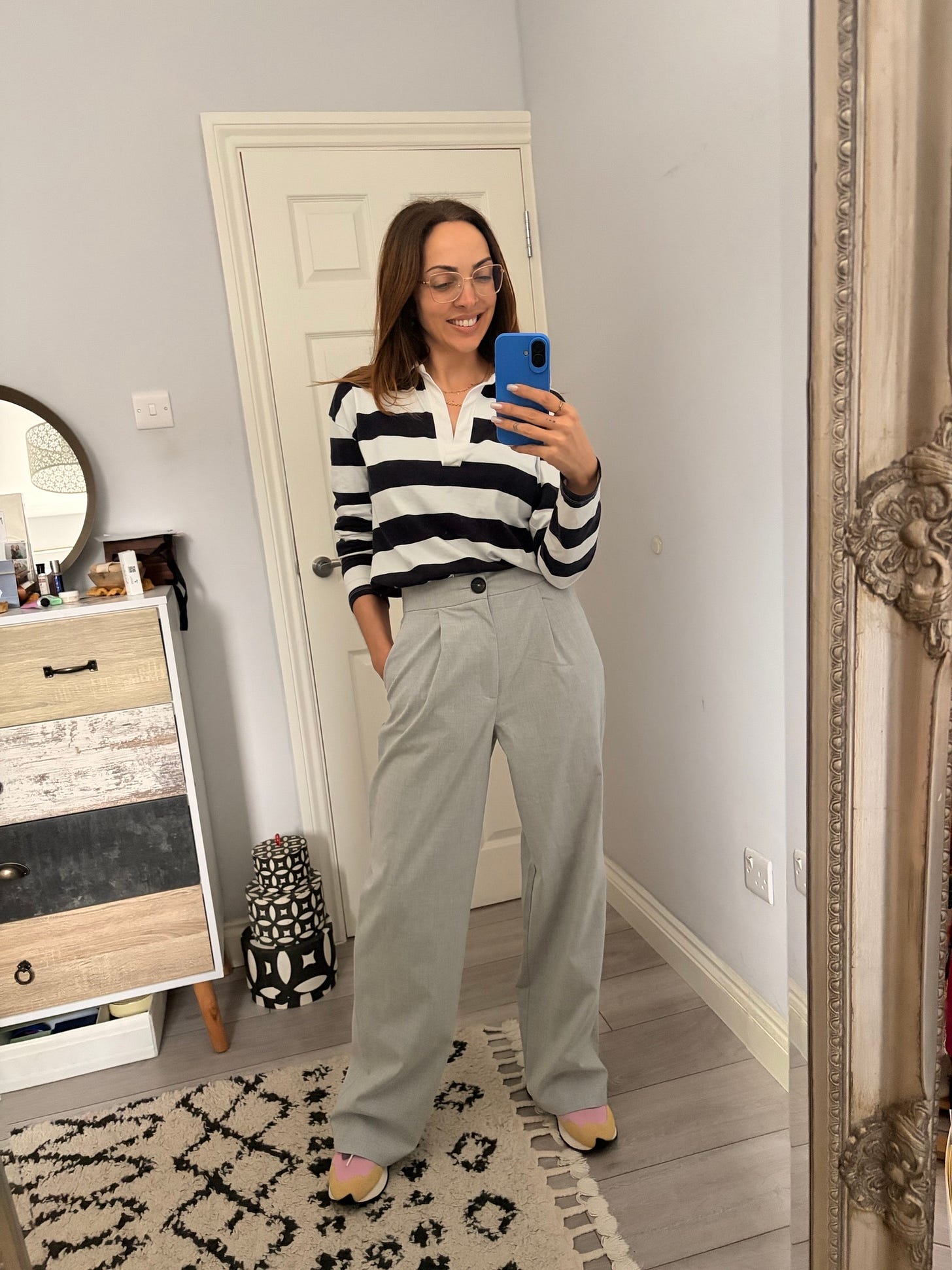 And if you’re someone who only pays attention to the top half because that’s what people see on Zoom, I really can’t recommend enough dressing the whole outfit. You’re not dressing for other people. You’re dressing for yourself. Ignoring the bottom half feels a bit like cheating, if I’m honest. Cheating on myself.