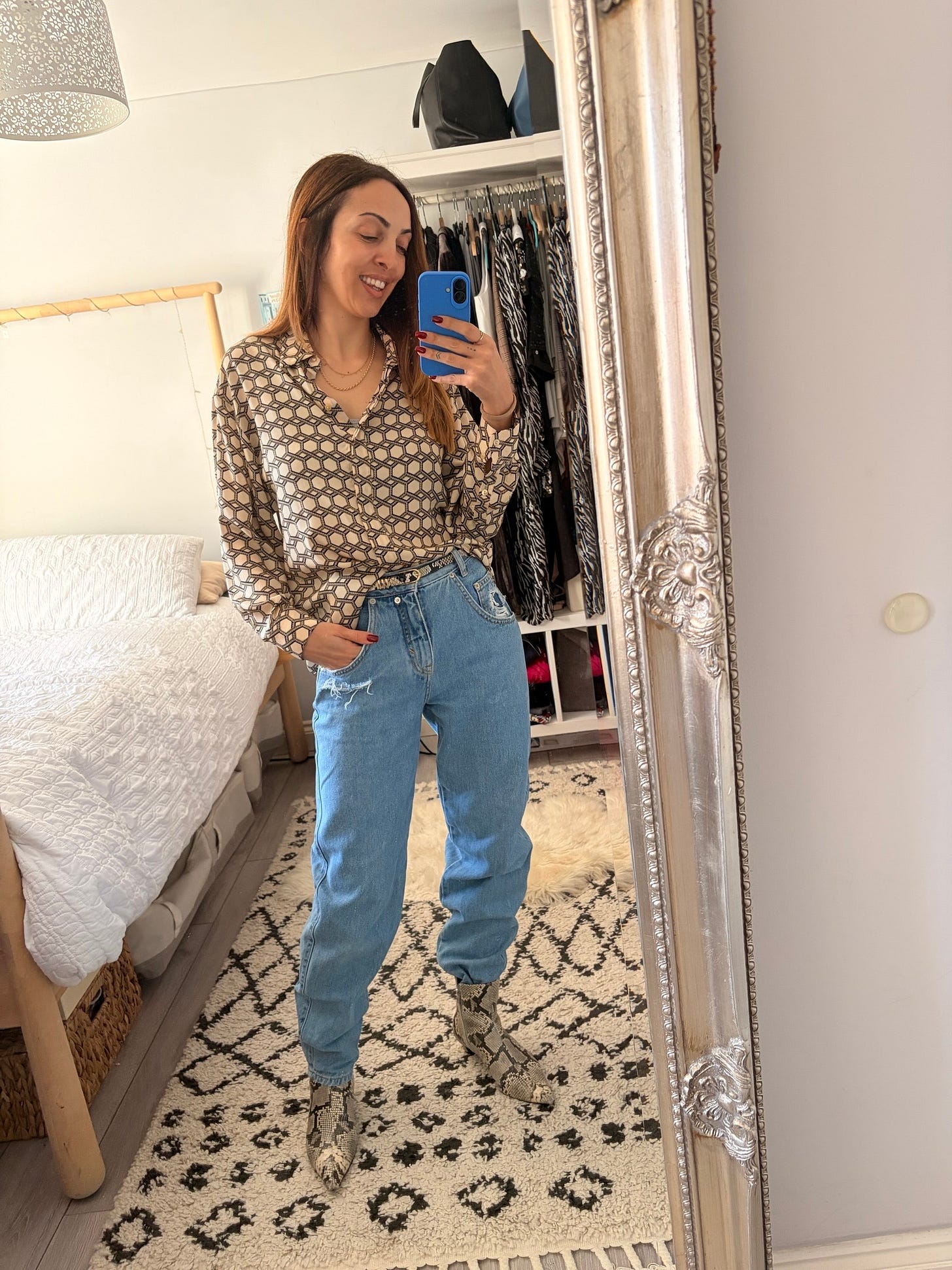 The jeans are a complete accident. I found them at a clothes swap I hosted at the end of last year and almost didn’t take them home. Now I can already tell you that you’ll be seeing a lot of them in 2026. They were the star of my capsule suitcase for Spain over the holidays. Comfortable, flattering, endlessly wearable. One of those pieces that quietly earns its place.